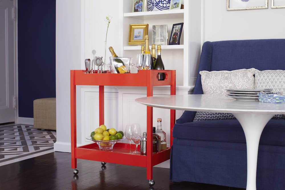 We classify it as a necessity. Where else would you mix your oomphtini? And what better way to service the unpredictable flow of your friends and family than with a chic bar cart that rolls from room to room on elegant casters. Our bar cart is a self-serving masterpiece, that is as much a conversation piece as it is a functional element to your entertaining needs. oomph’s two-shelved design can hold everything you could possibly need for a party and your everyday staples, and its beautifully shaped handle is reminiscent of our tini II. This bar cart is perfect for smaller spaces that might lack a proper bar or used for an additional watering station for larger parties. Offered in all 18 of our high-gloss, lacquered colors, the oomph bar cart is a must for the host or hostess that aims to effortlessly impress.
