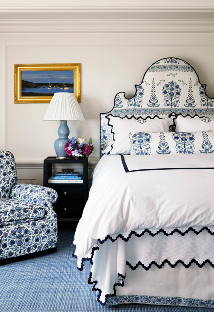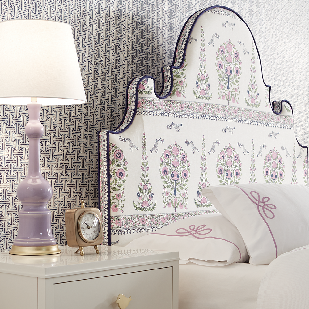 Elegant and Dramatic, our Charleston Headboard in Quadrille’s Kalamkari Fabric is a true beauty. . Why not make a bedroom one of the most beautiful rooms in your home?!