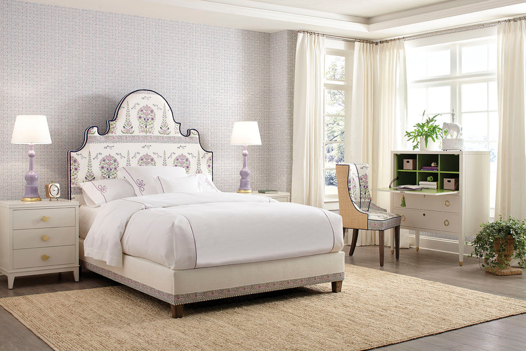 Our unique take of a classic secretary desk. Two tone lacquer, tassel details, and elegant hardware, all together make this an elegant desk for bedroom or home office. The front facing door locks with a tasseled key and opens on hinges to reveal a beautiful work space, complete with built in shelves. Chose a vibrant interior to really make a statement. Two lower “soft close” drawers to stow additional items. Chose your hardware – Brass or Nickel, tassel color, and interior and exterior colors.