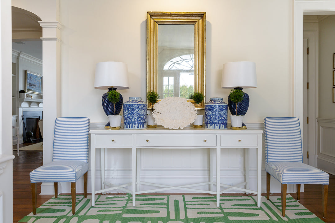 Please note, the finish on the surface of the console has a more durable finish, which may appear “less shiny,” to accommodate the natural traffic of a chest’s surface.