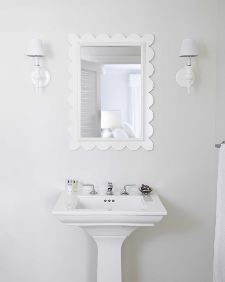Everyone’s favorite mirror in a sleeker, slimmer version! A single row of scallops, but still plenty of oomph. And although it’s smaller in scale, it does not skimp on mirror size.