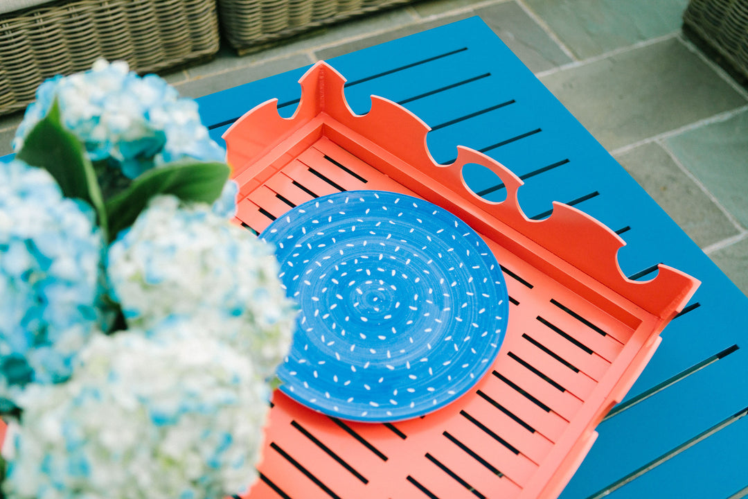 We’ve created a stylish outdoor tray designed to withstand all your outdoor styling and entertaining needs. It’s both large and light for easy transporting form house to patio, but built with slats to live permanently outside. Elevate your look with a punch of color or keep it sleek with one of our neutral tones.