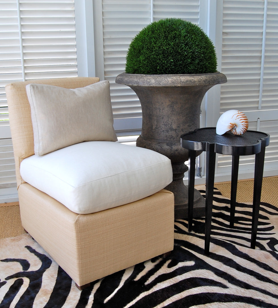 Small enough to fit in any space yet large enough for HIM! A great combo – natural raffia body. (back pillow not included)